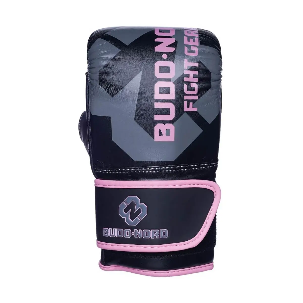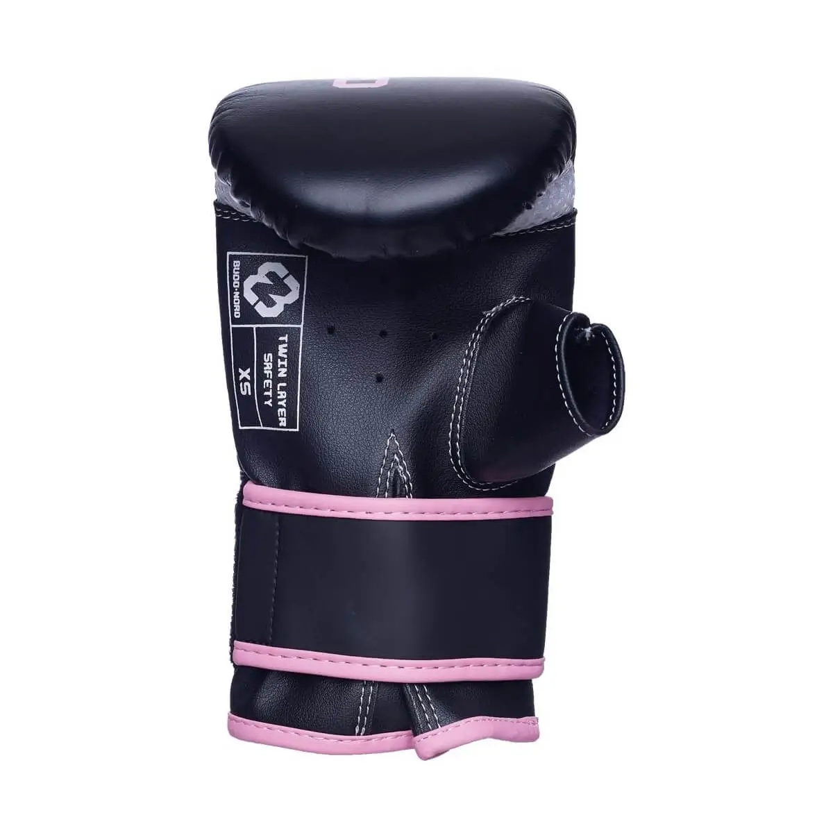 En rimelig sekkhanske i kunstlær med bøyde fingre og åpen tommel. Bred design og borrelåslukking gjør hansken lett å ta av og på.
