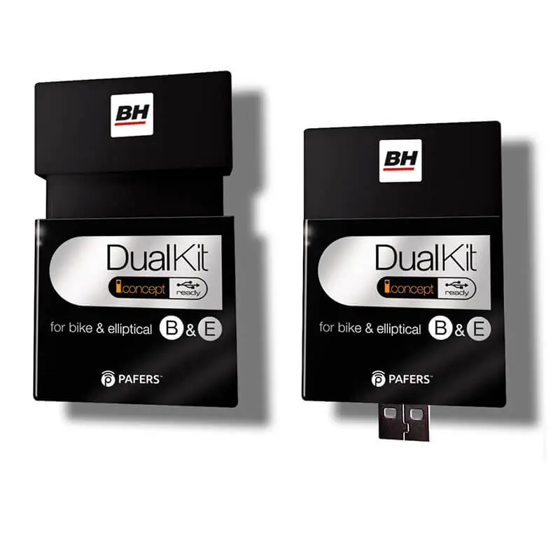 Dual Kit BE er en Bluetooth-modul for trimsykler og elliptiske treningsapparater med USB-tilslutning for i.Concept-apper kompatible med både IOS og Android eller andre OS.