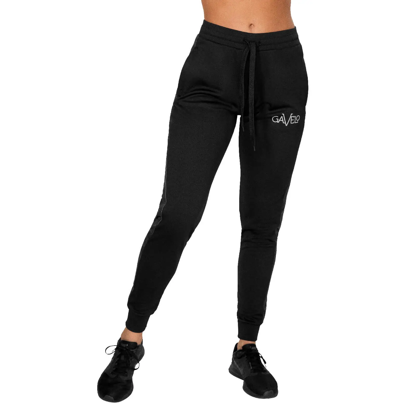 Stilige sorte treningsbukser fra Gavelo til damer med klassisk retro-utseende og designet for å gi en behagelig og pustende følelse gjennom hele treningsøkten.
