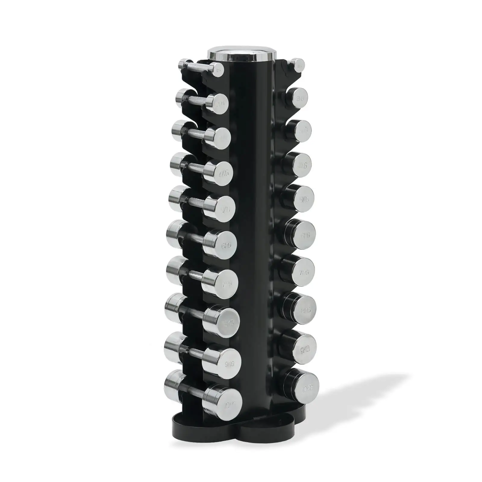 10 par (20 stk) kromte manualer, 1-10 kg og manualstativ.