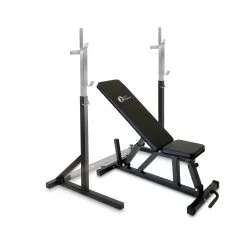 Treningsbenk og vektstangstativ i pakkepris.