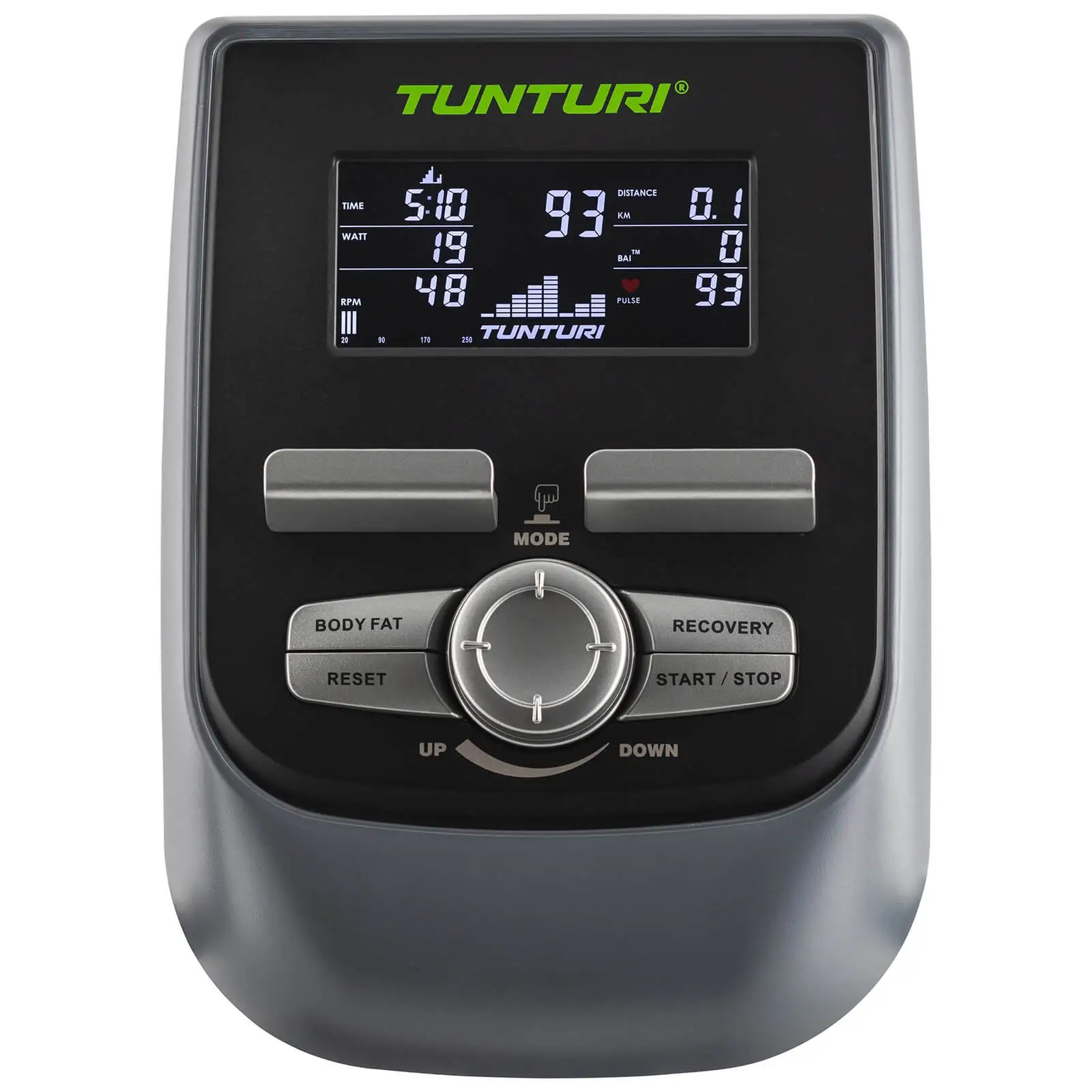 En veldig stabil og allsidig trimsykkel fra Tunturi for høy intensitetstrening hjemme eller lettere kommersiell bruk som f.eks. på en arbeidsplass.