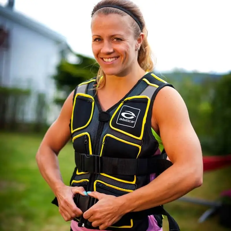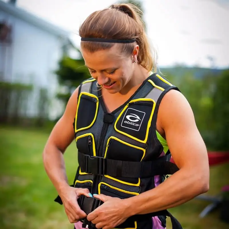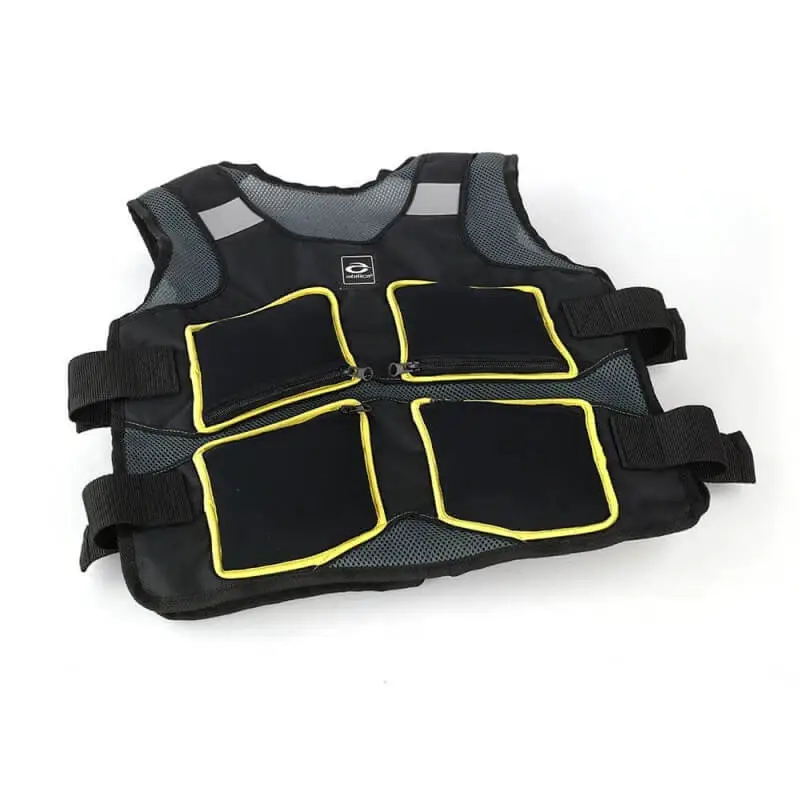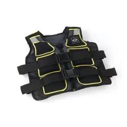 Nå med refleks, foran og bak. 8 stk. vektposer i nylon fylt med jernsand. Vesten kan vaskes for hånd når vektposene er tatt ut. Maks livvidde ca. 130 cm.