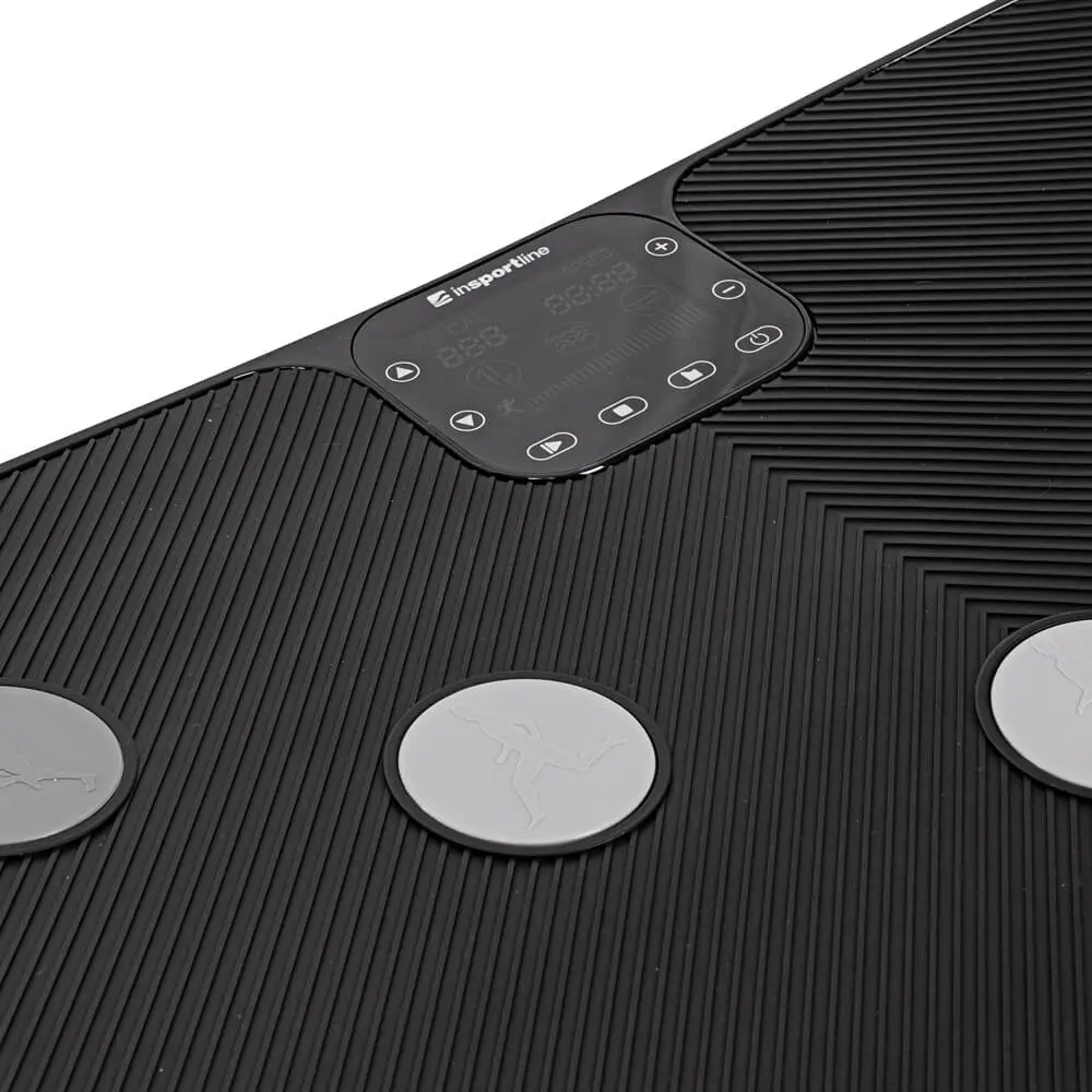 En vibrasjonsplate fra inSPORTline for muskelavslapping og trening hjemme, som er ideell for å styrke og forme kroppen din, så vel som restitusjon etter andre treningsformer.